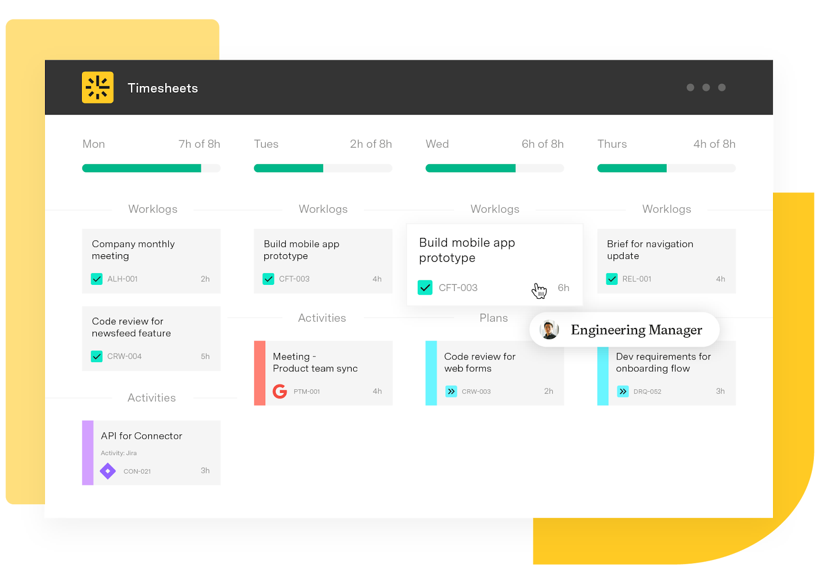 - Timesheets tied to sprints, epics, and teams.