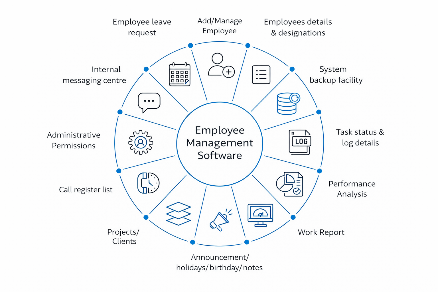 Employee management software brings the operational side of people management into one system. Instead of handling attendance, tasks, performance, and employee records across disconnected tools, it gives teams a single place to manage day-to-day work, accountability, and employee data. A modern employee management platform typically covers several core areas: