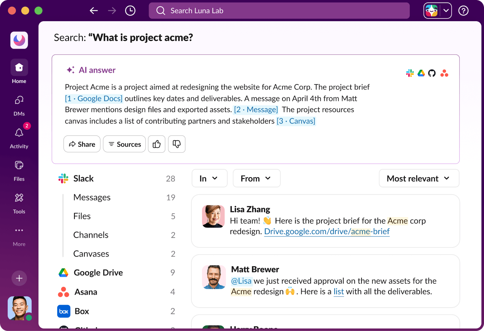Slack is a real-time messaging platform designed to centralize conversations that would otherwise live across email and ad-hoc chat tools. It works well for virtual assistants supporting fast-moving teams who need searchable, transparent communication. Channels and threads keep discussions organized by client or project, reducing email overload. Slack’s limitation is execution tracking, requests can disappear quickly, so it works best as a communication layer paired with task and time-management tools.
