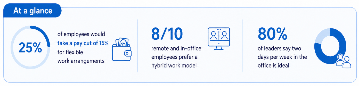 Hybrid work has become the default because it works for nearly everyone involved. The data on hybrid work schedule benefits is consistent across employers, employees, and business operations.