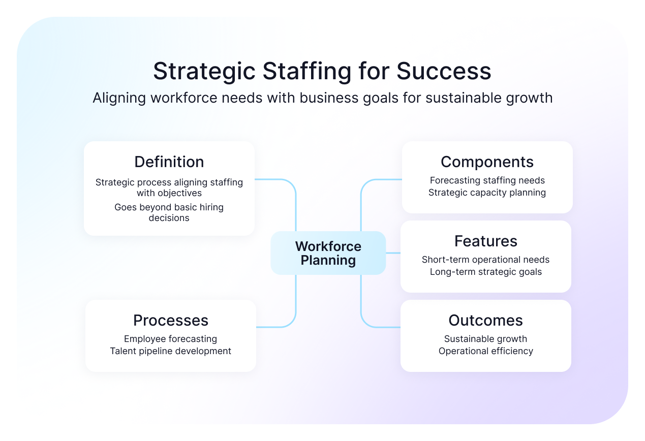 Aprenda a crear una estrategia eficaz de planificación de la fuerza laboral. Esta guía abarca la previsión, la asignación de recursos, las herramientas y las mejores prácticas para equipos en crecimiento.